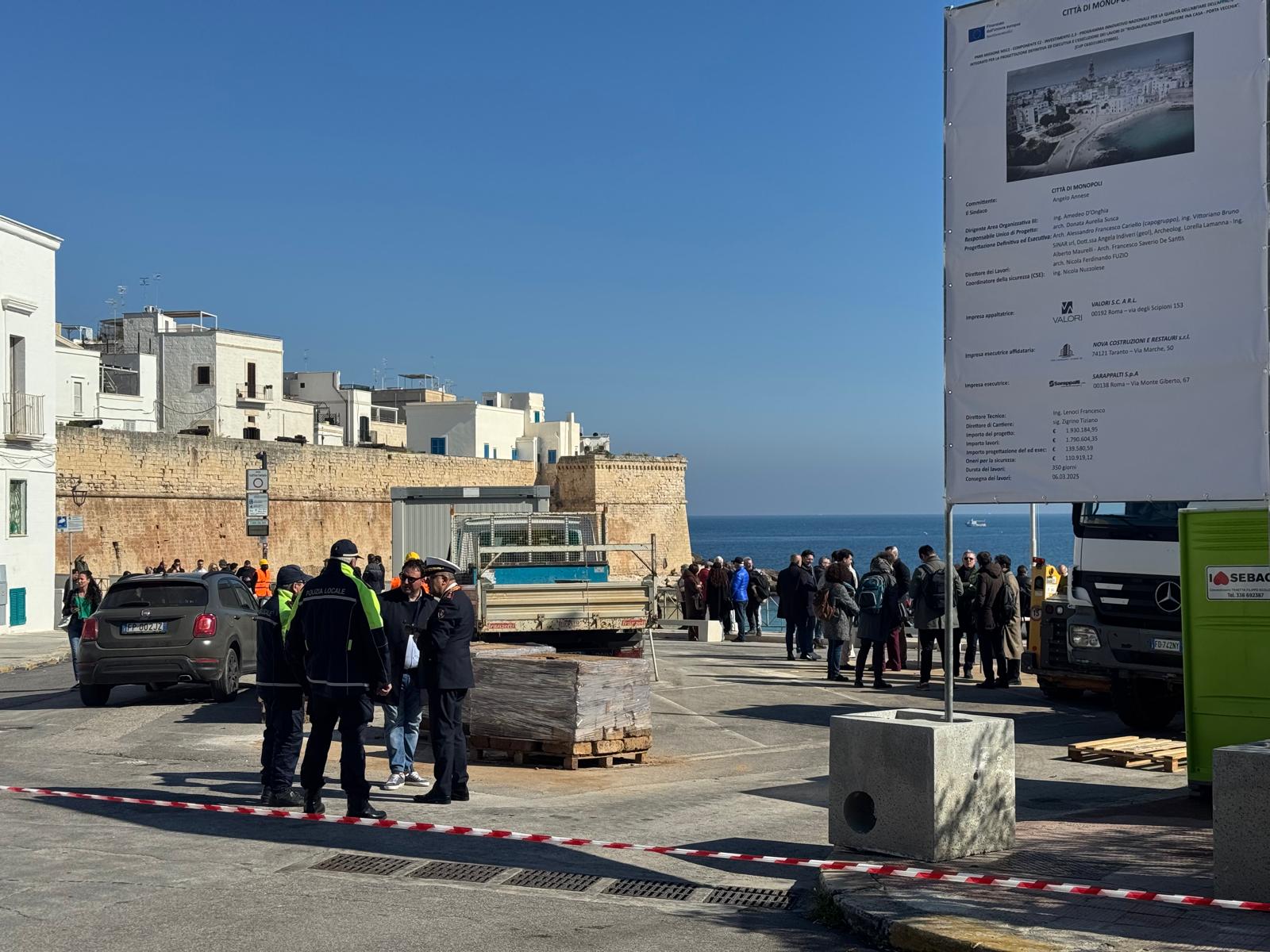 Le due immagini dello scorso 6 marzo, illustrano la pompa magna con la quale è stato aperto ufficialmente il cantiere di Portavecchia.
